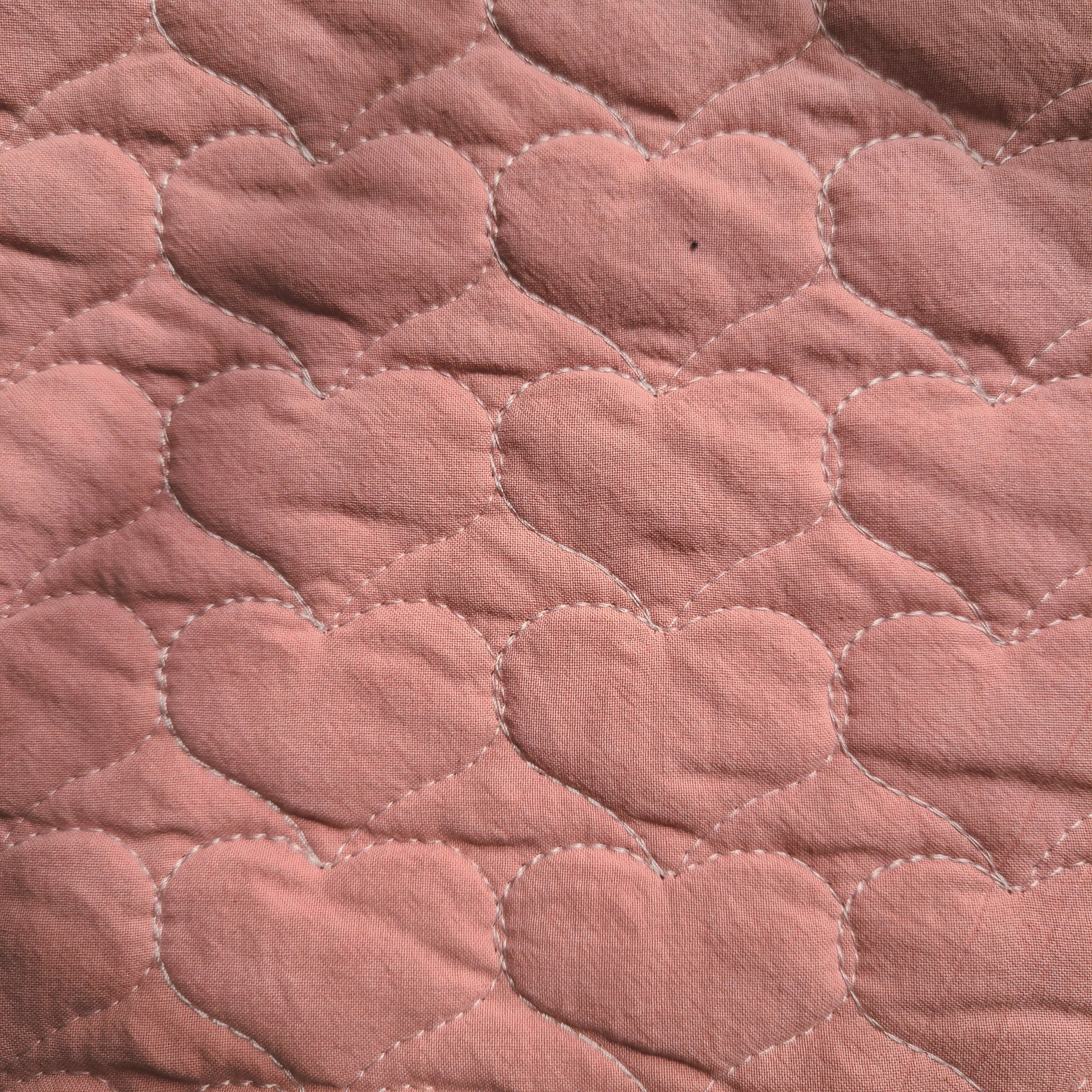 軽くて、ウォッシュ加工(洗い加工)が施された、コットン素材で可愛いハート刺繍のキルティング素材です。