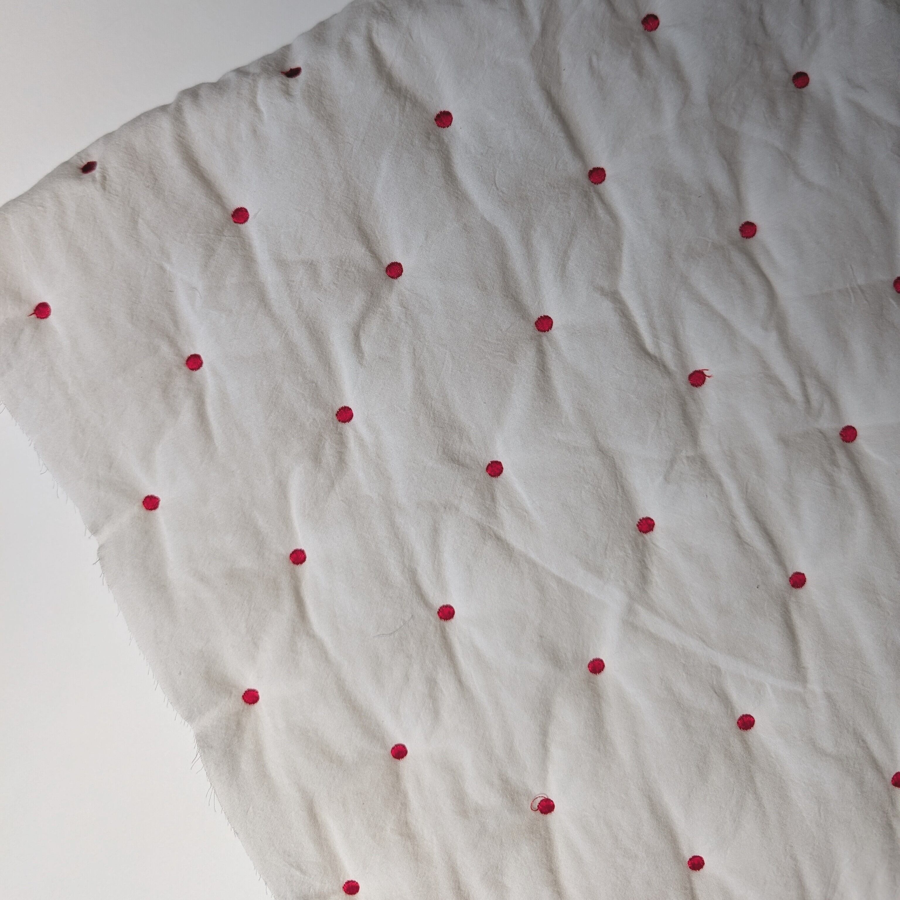 ナチュラルなホワイトカラーに、さりげなく施されたドット刺繍がポイントです。