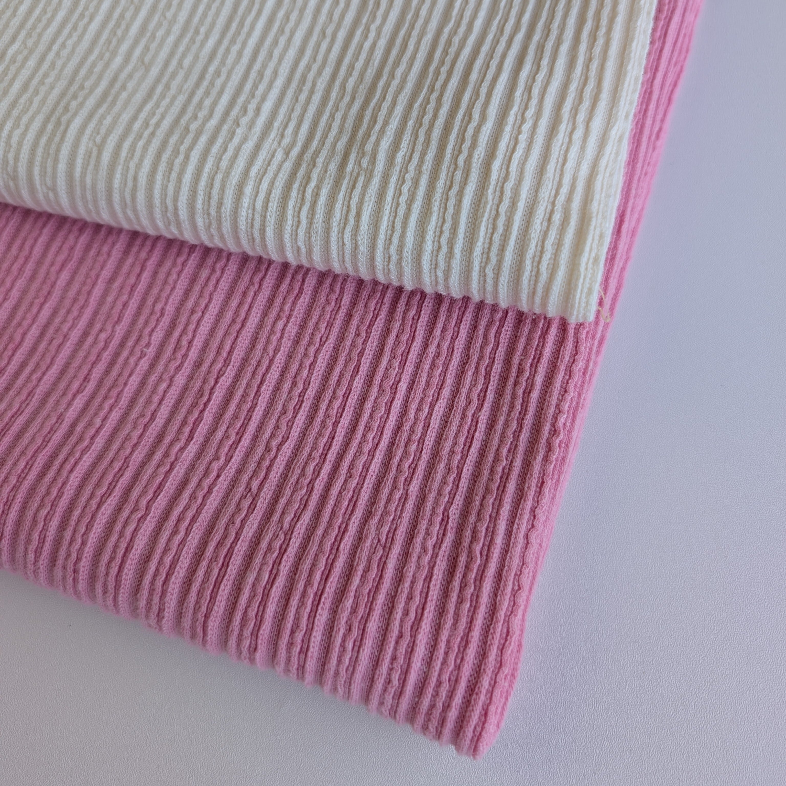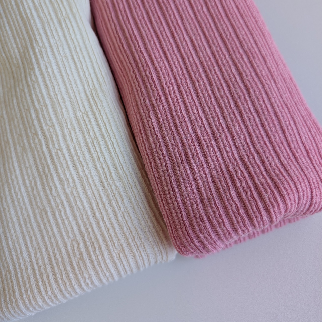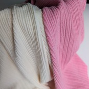 見た目にも肌ざわりにもふわっとやさしい、伸縮性のあるリブニット生地です。