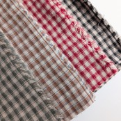 ふわっと起毛された表面と、やさしい配色のチェック柄が魅力のナチュラルコットン生地です。