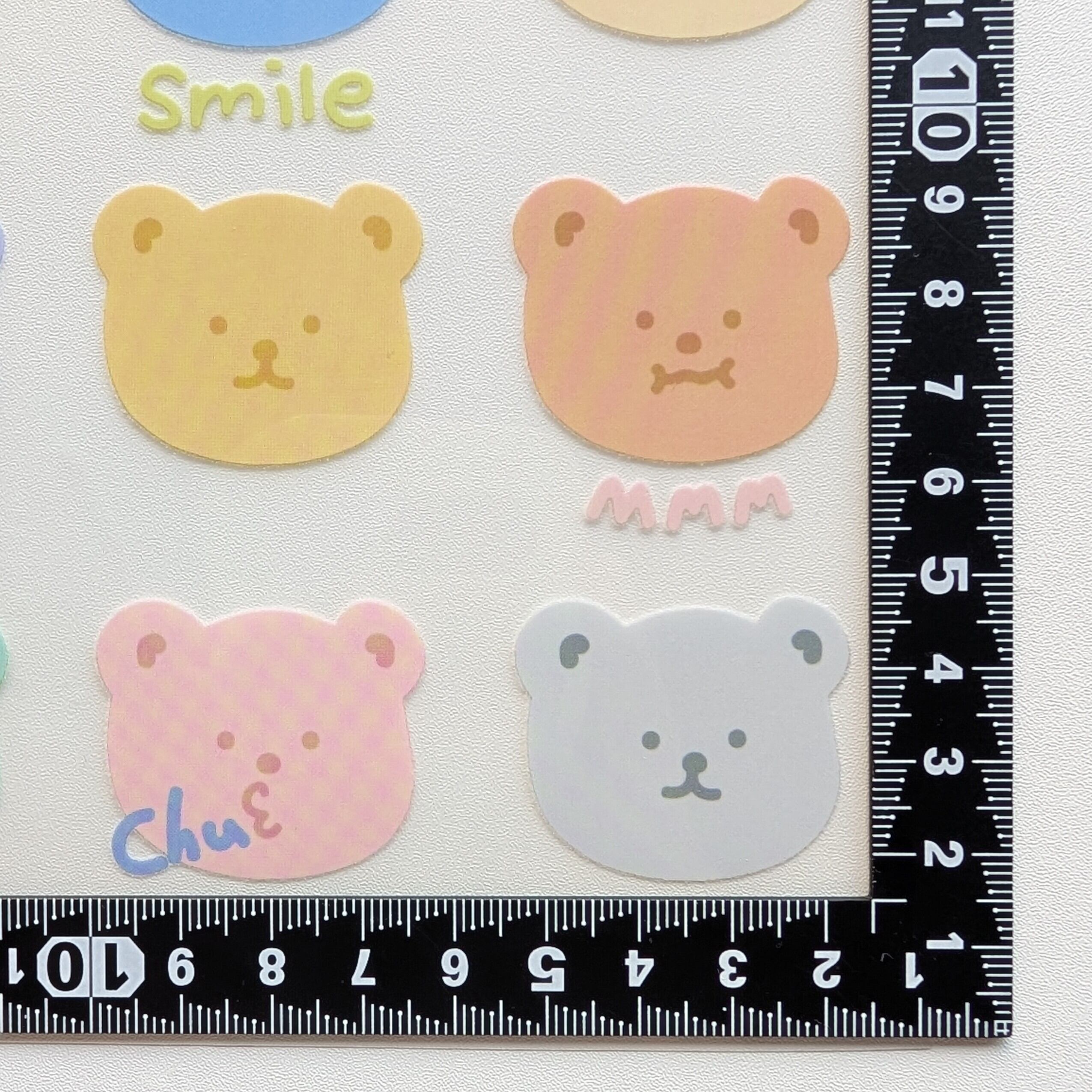 パステルカラーのカラフルなくまフェイスが並んだ、とってもキュートなアイロンシート♡