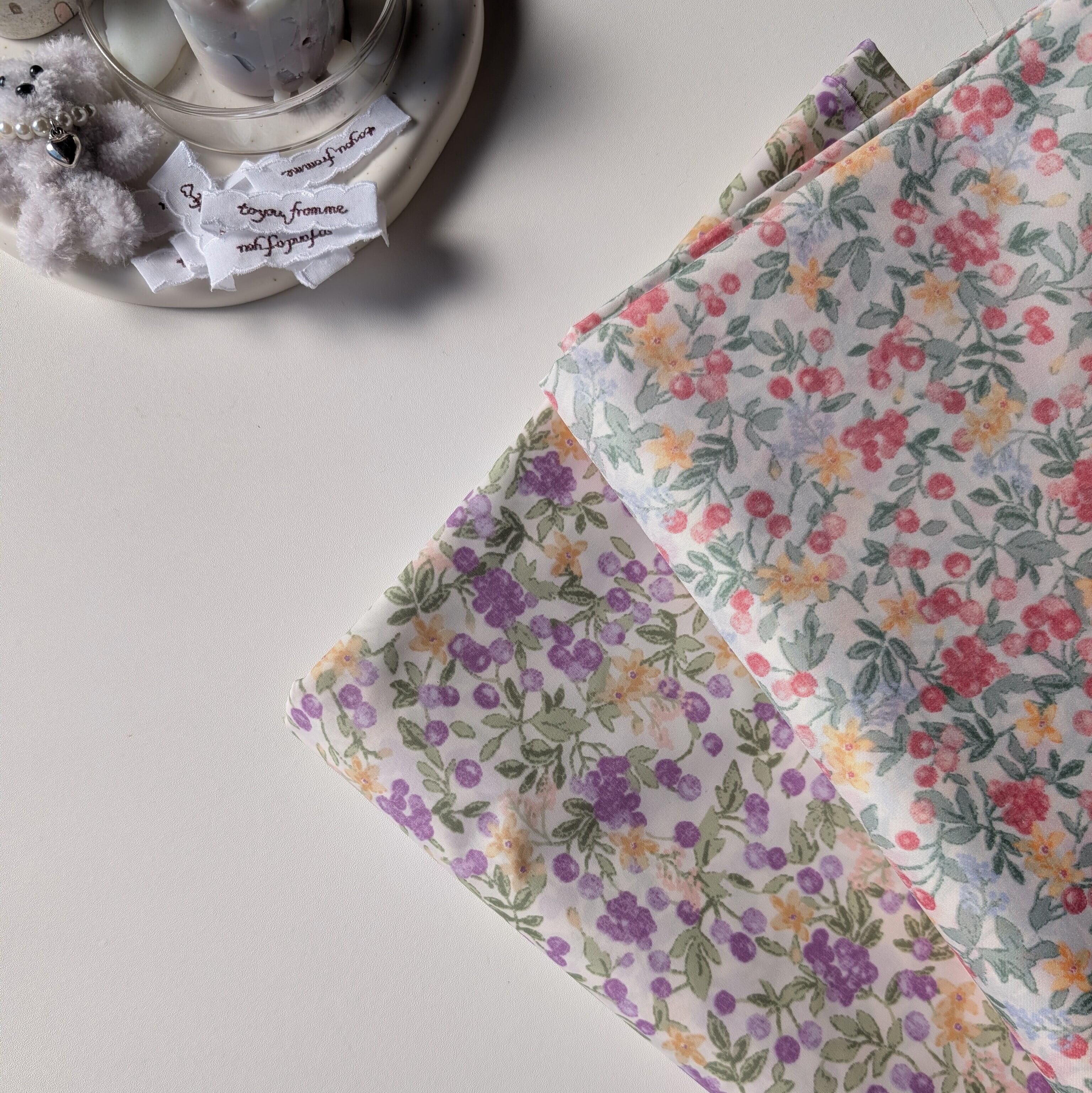 やさしい色合いのベリーと小花を散りばめた、