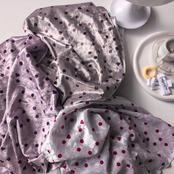 光の角度で艶めくベロア生地に、キャンディのように可愛い“ドット&ハート”柄の華やかな雰囲気のベロアニットです。
