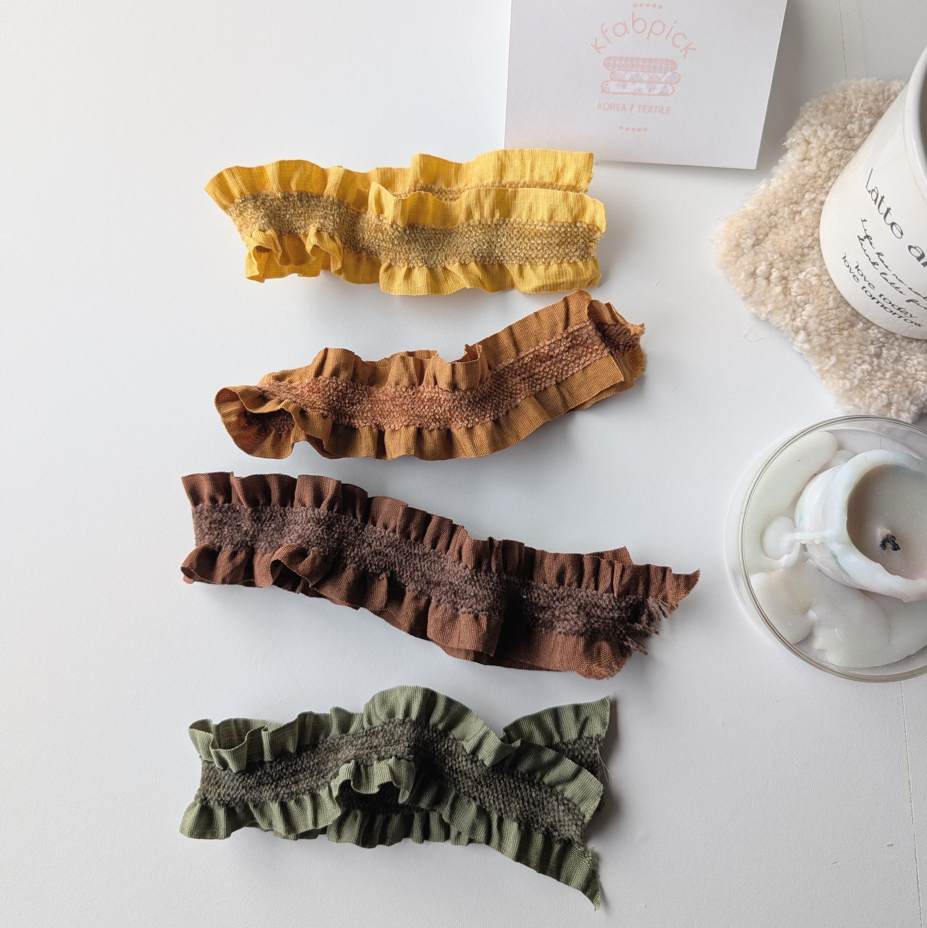 布端にフリルをあしらった、ストレッチ性のあるフリルリボンです。