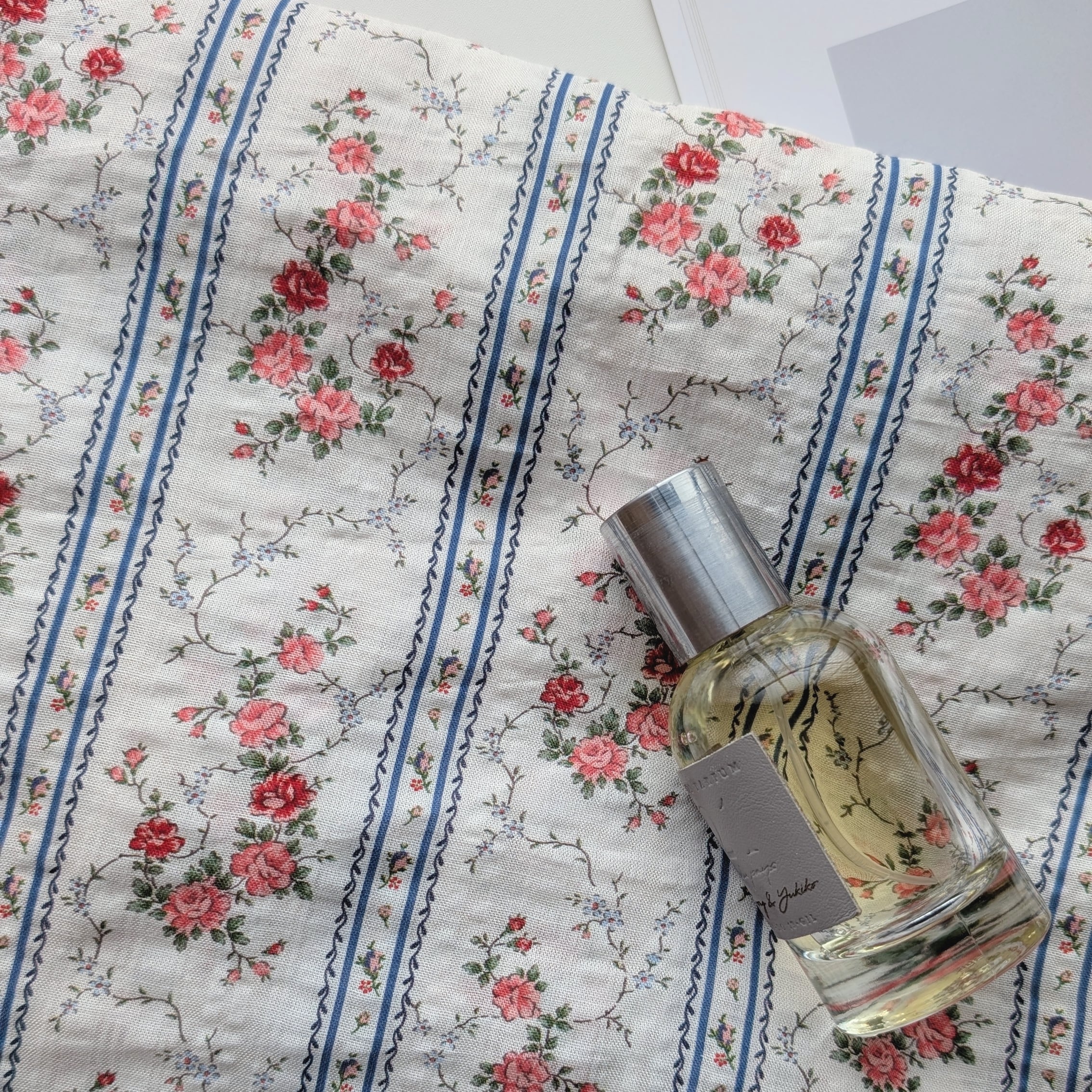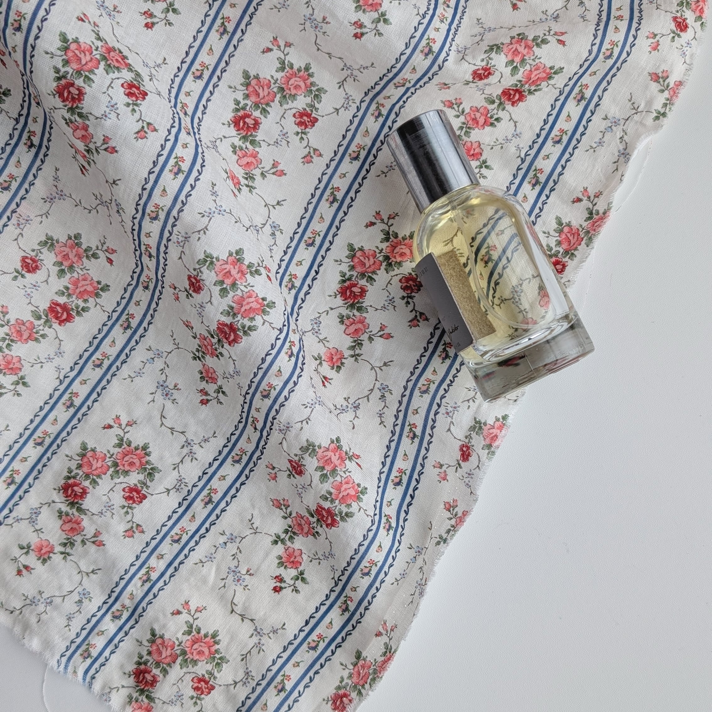 繊細な小花とストライプが重なった、