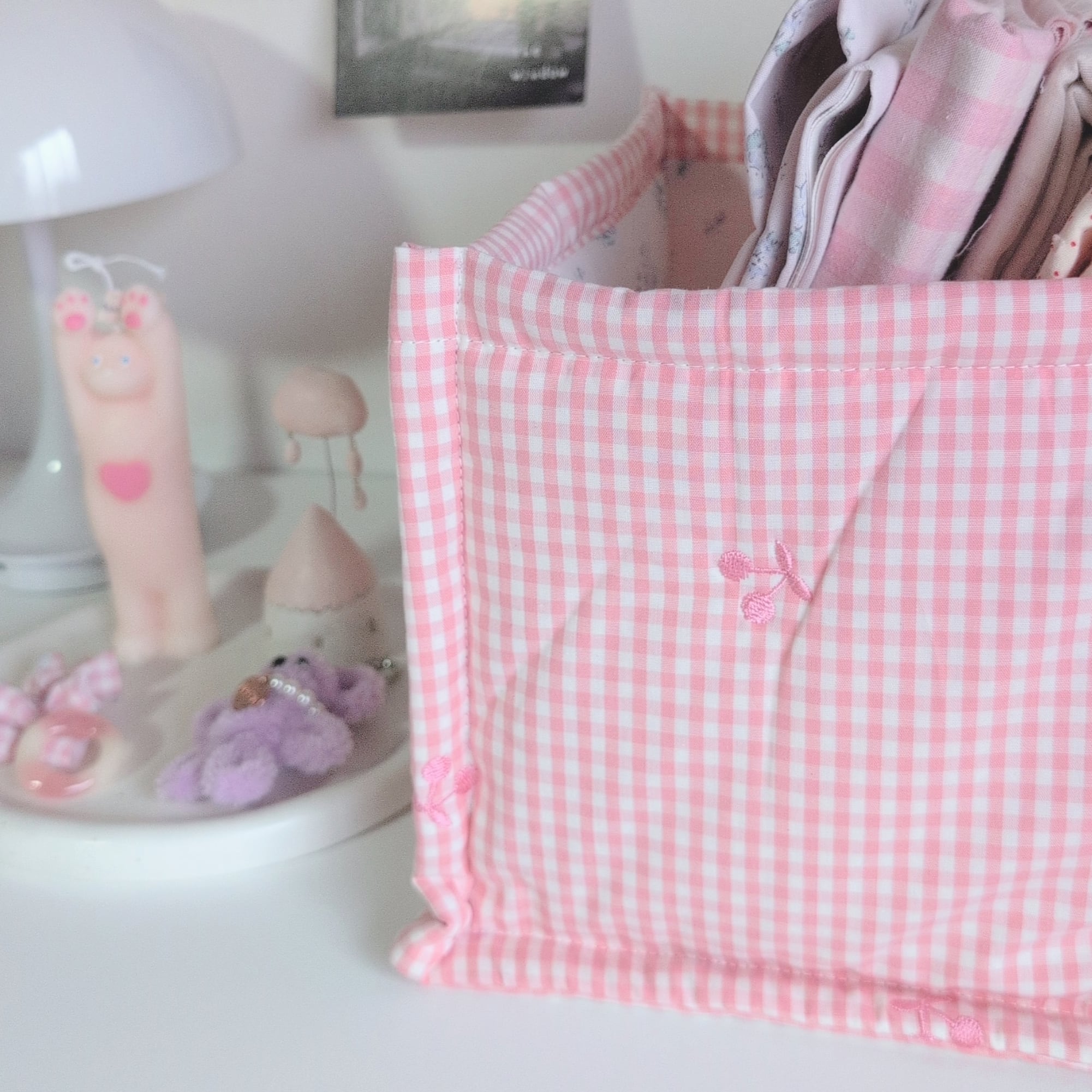 《即納》キルト⌇cherry gingham pink⌇ チェリーギンガムピンク 韓国生地 kf_qu014