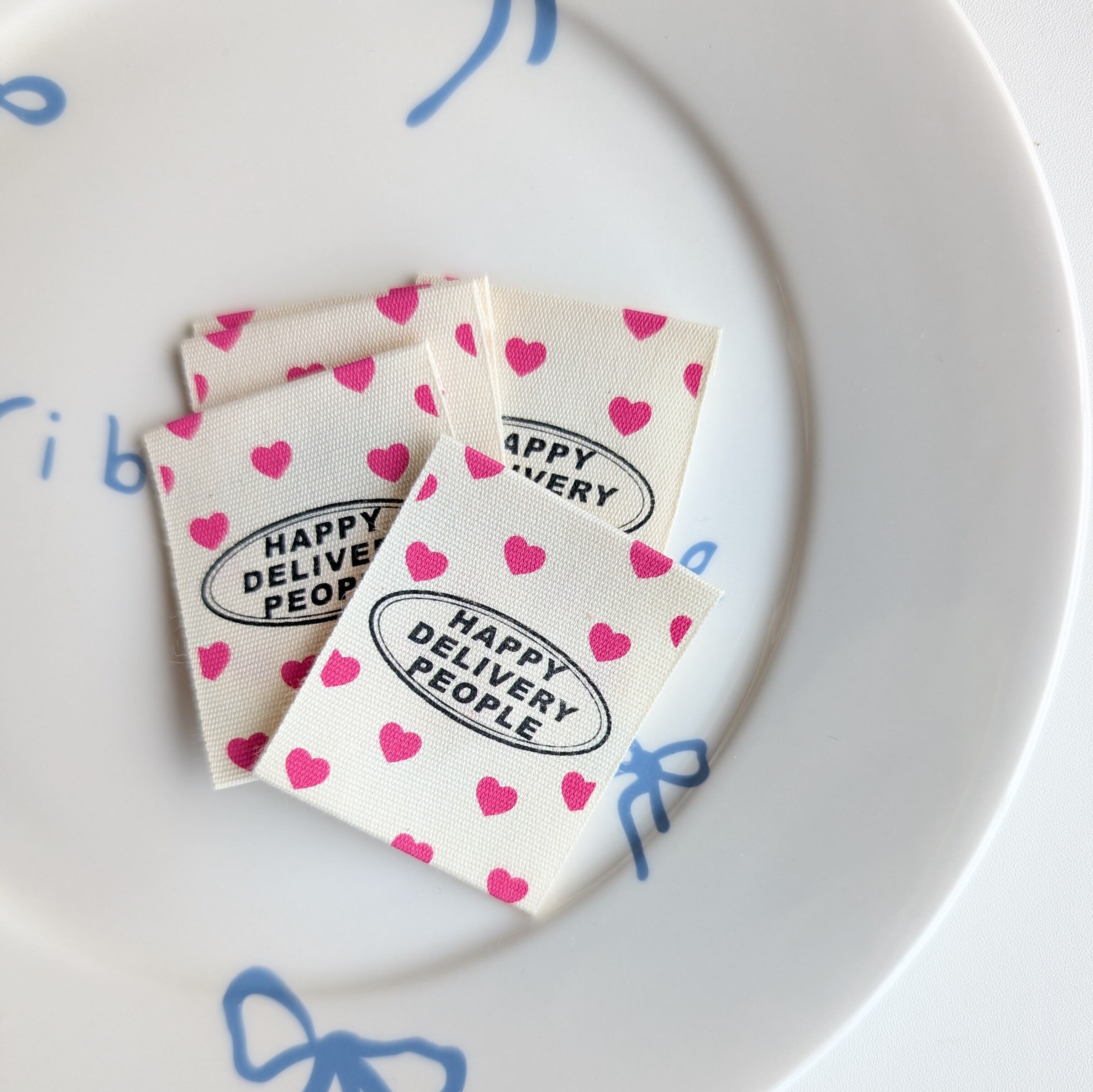 《即納》おまとめ10枚|布タグ(HAPPY DELIVERY ピンク ハート) ラベル タグ 韓国 kf_ra024