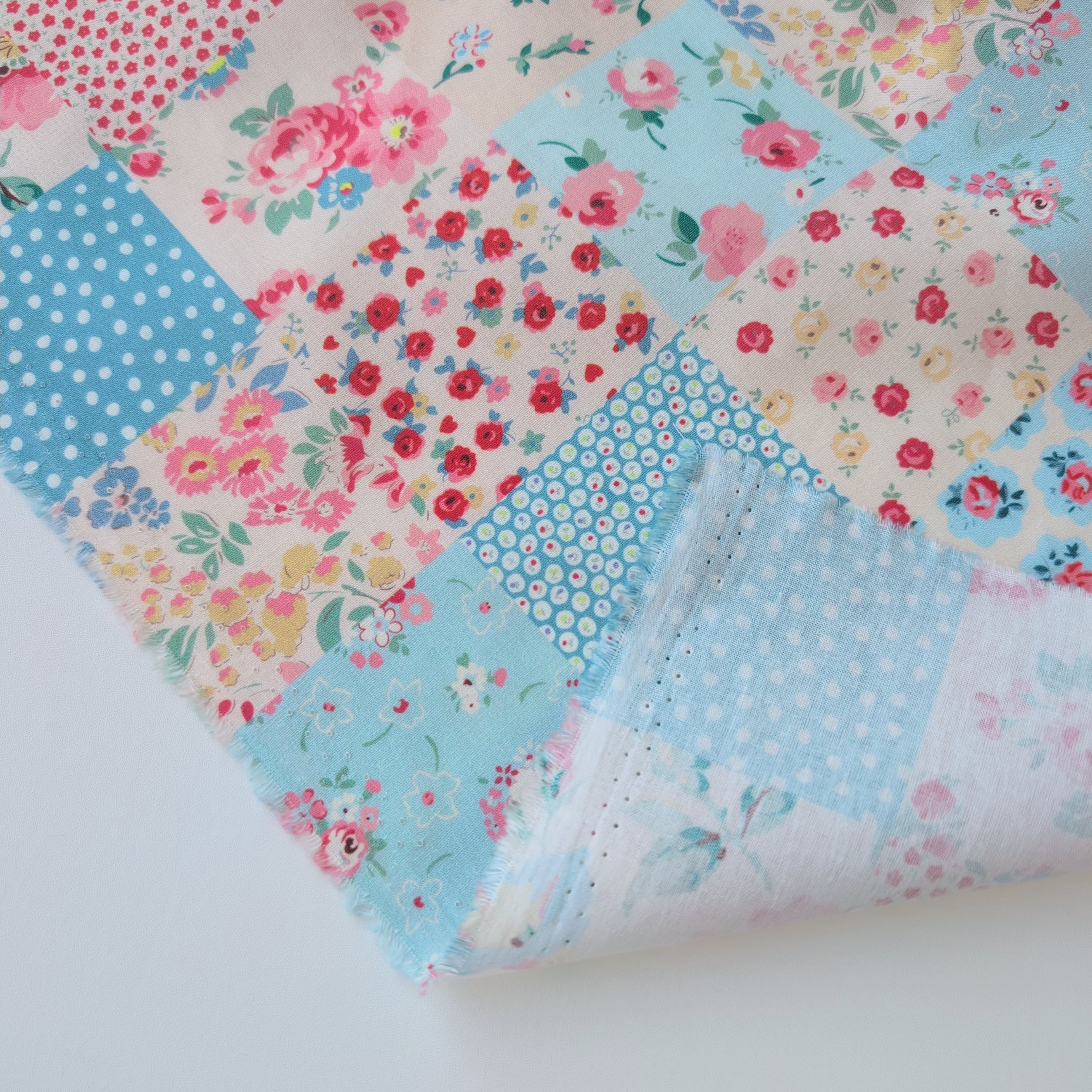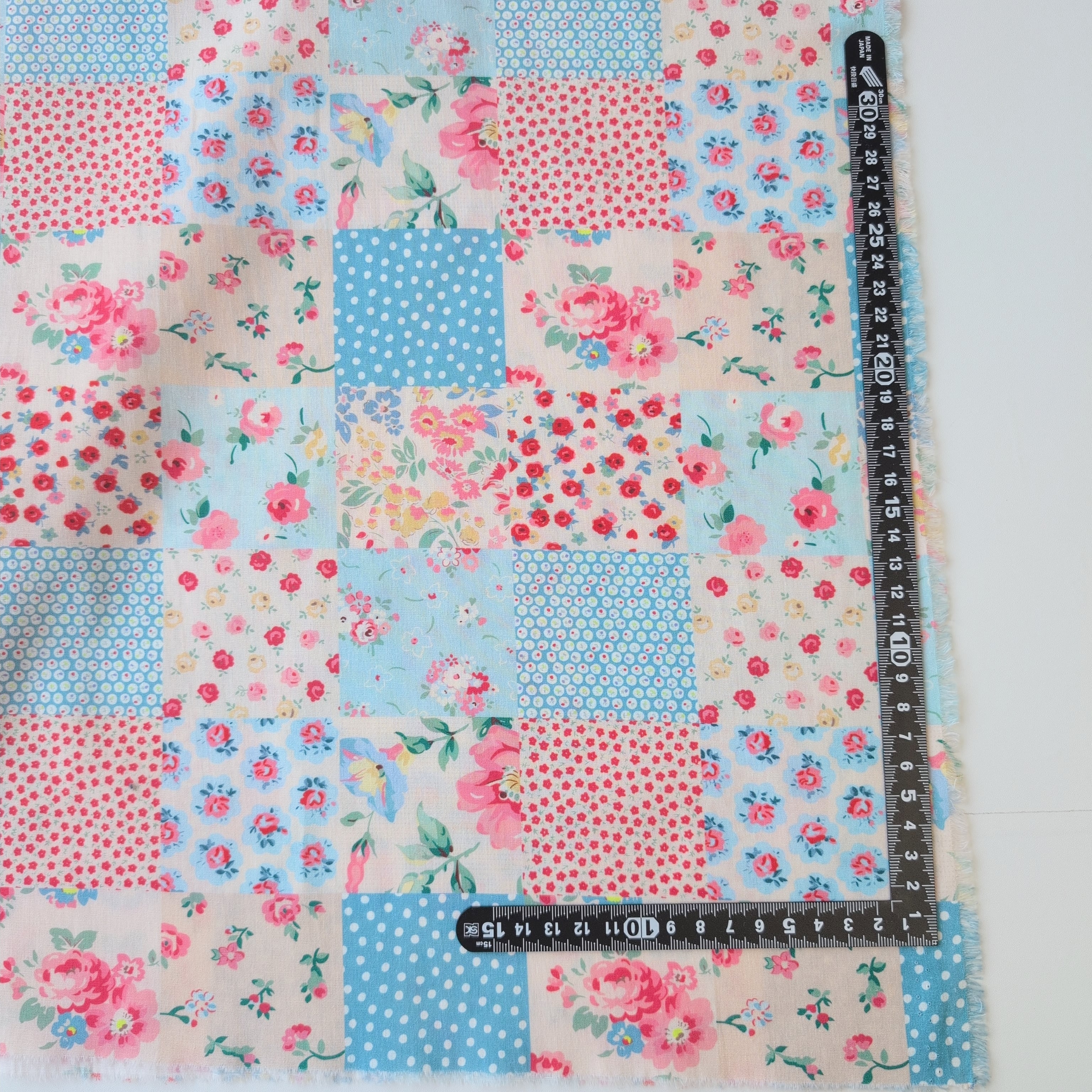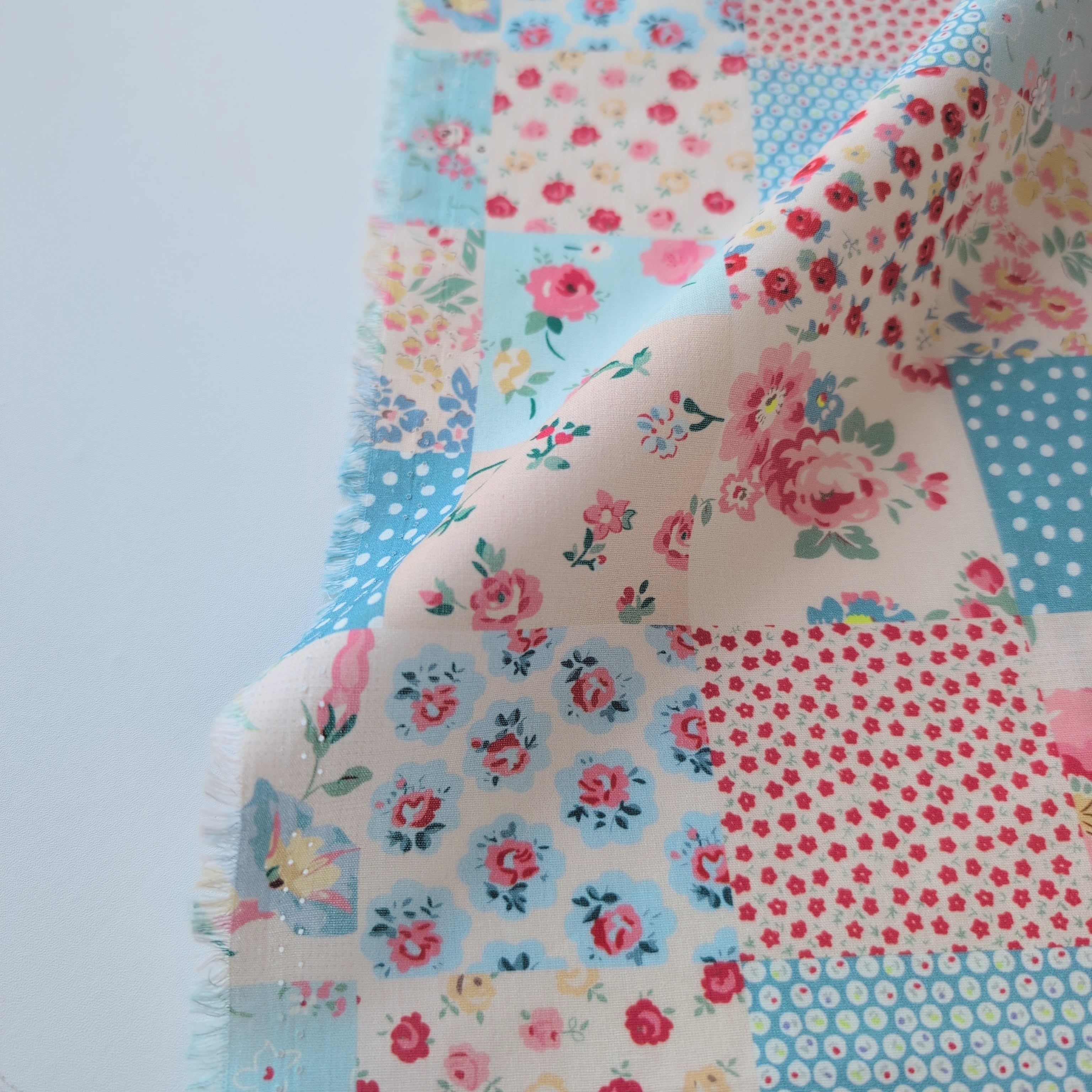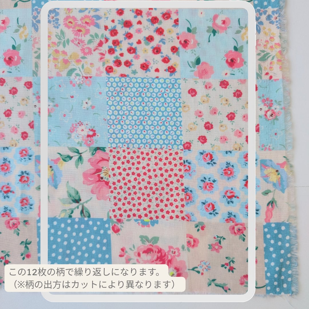 パッチワーク風デザインのコットン生地。