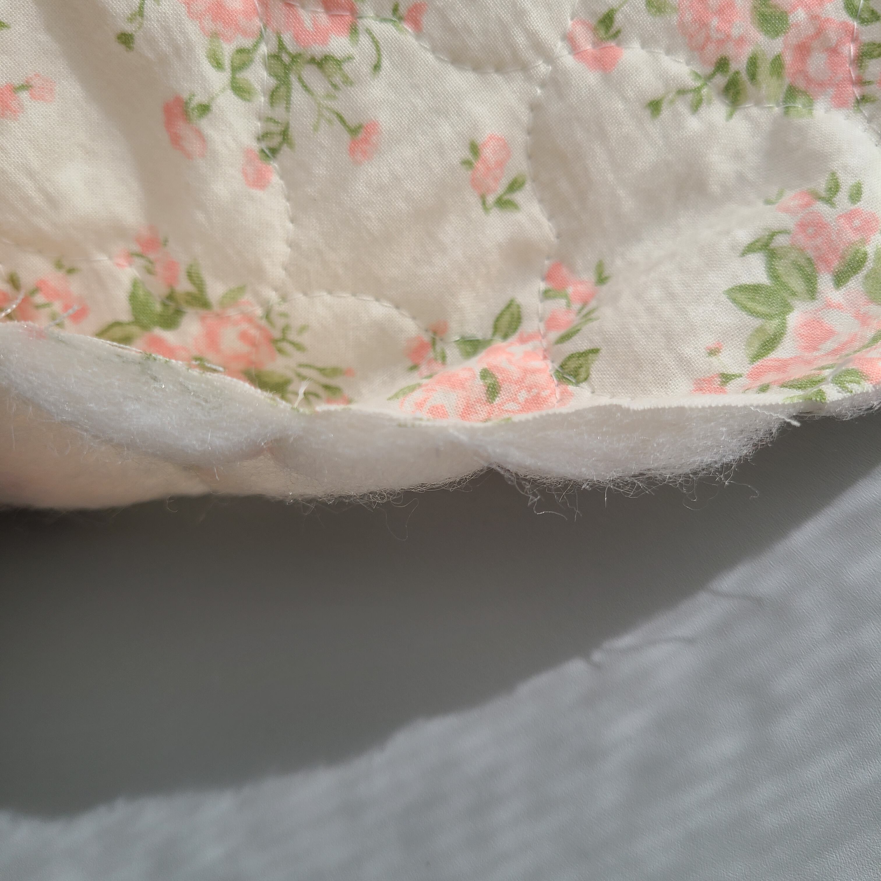中綿は少し薄手で、裏面には裏地をつけて使用することをおすすめいたします。
